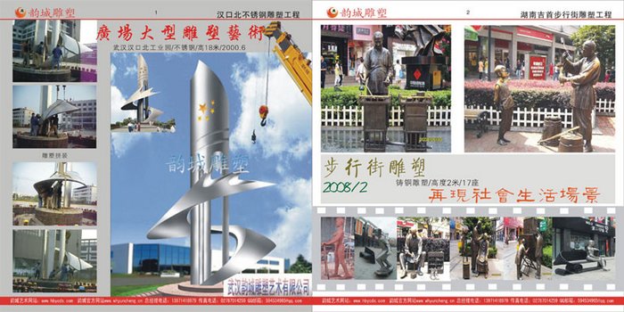 武漢韻城雕塑藝術(shù)公司,省市大型雕塑企業(yè),公司位于武漢市江夏區(qū)世紀(jì)廣場(chǎng),工廠總面積9000多平方,藝術(shù)名家之多,配置三維建模和3D掃描打印先進(jìn)系統(tǒng),大型程控雕刻設(shè)備。精典工程有:武漢萬(wàn)達(dá)步行街雕塑,武鋼工業(yè)遺址公園雕塑,天河機(jī)場(chǎng)T2銅雕塑,漢正街復(fù)地大型不銹鋼雕塑,漢口吉慶街雕塑工程,荊州廣場(chǎng)鳳凰雕塑,貴陽(yáng)大數(shù)據(jù)廣場(chǎng)雕塑...